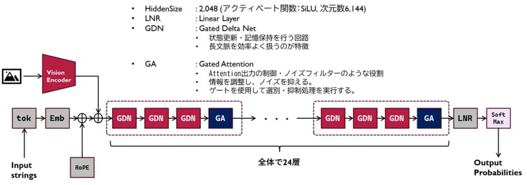 Qwen3.5の特徴は、それ以前に出てたQwen3-Nextの構成を踏襲しているところです。