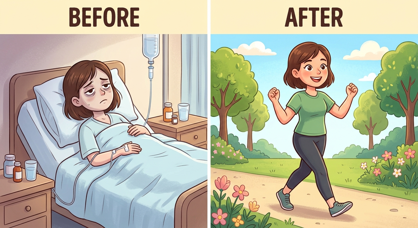 大量に献血で得られた免疫グロブリン(IgG)を投与してもらうことで、体の中に不良免疫を作りにくい環境にしていく方法で、それまで実施してたヒフデュラの投与と異なり、免疫力がそこまで低下しないことが特徴です。以前はヒフデュラがなかったので、半年に一度入院して治療を受けていました。